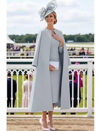 Set di Abiti Lunghezza Ginocchio Abito da Sposa per Invitate Abito Madre della Sposa Manica Lunga Girocollo Elegante Semplice Invitate di Matrimonio con Colore Solido