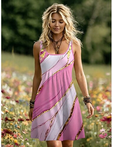 Per donna Mini Abito Vestito Casual Vestito Estivo Abito a trapezio Abito a spalle scoperte Vacanza Casual Vestibilità regolare Grafico Astratto Marmo Senza Maniche Collo a U Scollo Tondo Giallo Rosa