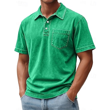 Per uomo Polo Camicia 100% cotone lavaggio acido Casuale Ferie Bavero Manica Corta Moda Essenziale Semplice Vintage ▾ angosciato Estate Primavera Tutte le stagioni Vestibilità regolare Blu Nero Blu