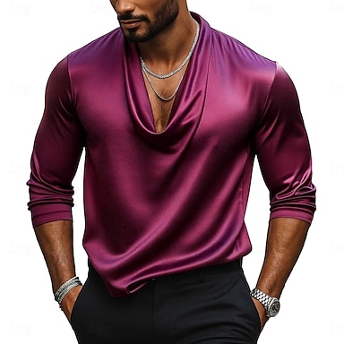 Per uomo Camicia Camicia in raso Camicia elegante Camicia con Bottoni Camicia da Ballo Sfumatura Matrimonio Formale Rosa chiaro Blu chiaro Nero Blu Manica Lunga Collo ripiegato Tutte le stagioni