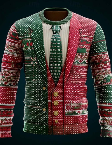 Maglione di Natale brutto Per uomo Babbo Natale Stampa 3D Maglione Maglieria Girocollo Casual All'aperto Regali di Natale Vacanza Tenere al caldo Manica Lunga Autunno Inverno Rosso Verde