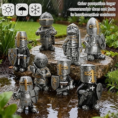 8 pezzi di decorazioni da giardino a forma di cavaliere, gnomi, divertenti sculture di guerra medievali, statue di guardie dell'esercito, decorazioni per esterni, cortile, prato, resina, set da 8
