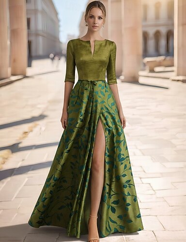 Linea ad A Lunghezza al pavimento Abito Formale Abiti da Cocktail Abito da Sera Da principessa Abito formale Elegante Manica 3/4 Scollo a V Festa in giardino Matrimonio Jacquard con Tasca