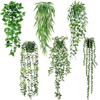 Confezione da 4 felci artificiali sospese, foglie variegate, foglie di denaro finte, ghirlande di vite finte per pareti, decorazioni per interni ed esterni, per la casa e il giardino
