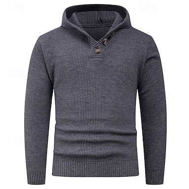 Per uomo Maglione Maglione a maglia A Coste Maglia Top Regolari Bottoni Lavorato a maglia Semplice Con Cappuccio Moda Essenziale Vacanza Abbigliamento quotidiano Abbigliamento Autunno Inverno Nero