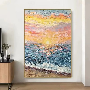 dipinti astratti testurizzati fatti a mano con alba e vista mare su tela, decorazione murale, quadri moderni per l'arredamento di casa, dipinti arrotolati senza cornice e non intelaiati