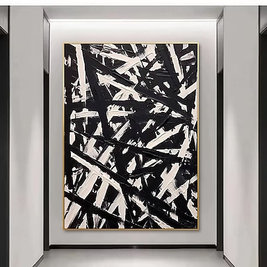 dipinto a olio fatto a mano su tela, decorazione da parete, astratto in bianco e nero per la casa, dipinto appeso su telaio teso/dipinto arrotolato senza cornice