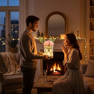Lampada a forma di rosa, ricaricabile, senza fili, con luce soffusa e touch, con cristalli, piccola luce notturna dimmerabile a 3 colori - regalo di compleanno per donne, mamme, mogli, decorazione per