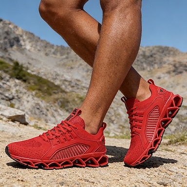 Scarpe da ginnastica da uomo rosse, sportive, traspiranti, con lacci, ideali per serate in resort, passeggiate in vacanza, viaggi informali, tempo libero all'aperto, streetwear e look attivi per le serate di vacanza.