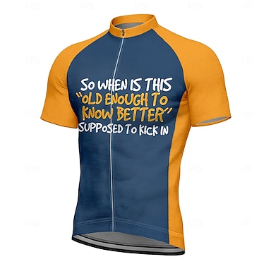 Per uomo Maglia da Ciclismo Grafico Lettere & Numeri Divertente Manica Corta Bicicletta Maglia Top con 3 tasche posteriori Mountain Bike MTB Ciclismo su strada Asciugatura Rapida Strisce Riflettenti