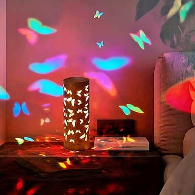 Lampada di proiezione a forma di farfalla in bambù con alimentazione USB, per interni, camera da letto, sala da pranzo, comodino, atmosfera, decorazione, luce notturna, altezza 20 cm