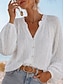 Per donna Blusa Pizzo Bottoni Tinta unica Elegante Casual Manica Lunga Scollo a V Top Regolari Quotidiano Bianco Estate Primavera Autunno