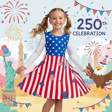 ragazze' 3D Grafico A righe Stelle Abito Manica Lunga Stampa 3D Primavera Autunno Quotidiano Vacanza Feste Casual Principessa Bello Bambini 4-12 Anni Vestito Casual Abito a trapezio Lunghezza al