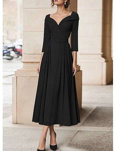 Linea ad A Lunghezza alla caviglia Lunghezza Tè Vestito da Festa Abito da Cocktail Abito da invitata a nozze Abito da cerimonia per signora Manica 3/4 Senza Spalle Elegante Semplice Abito Nero Ospite