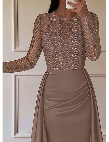 Tubino Colonna Strascico a Terra Abito Formale Abito da sera Abito da Sera Elegante Vintage Manica Lunga Girocollo Formale Poliestere con Cristalli Perline