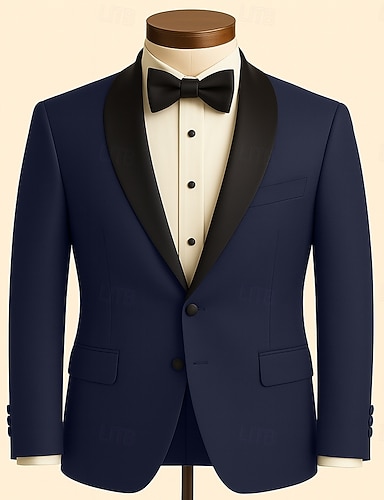Uomo Smoking Abiti da sposo Matrimonio in Spiaggia Matrimonio primaverile Blu marino Primavera & Estate Tuta Bavero sciallato Affari Formale Tinta unita Vestibilità standard 3 pezzi Monopetto a un