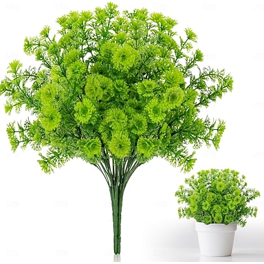 8 mazzi di margherite artificiali per decorazioni estive da esterno, resistenti ai raggi UV, fiori finti per cimitero, piante artificiali finte, arbusti verdi in plastica, piante artificiali per