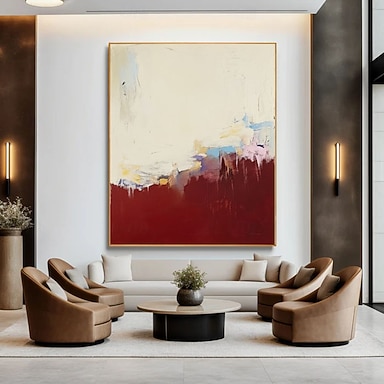 dipinto astratto fatto a mano, originale pittura acrilica a impasto su tela, dipinti su tela rosso beige, tela beige extra large, arte da parete per soggiorno