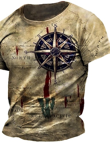 Per uomo Grafico Nautico Bussola Maglietta Maglietta consumata Manica Corta maglietta Stampa 3D Girocollo Camicia Vintage Moda Designer All'aperto Casuale Quotidiano Cachi Primavera & Estate