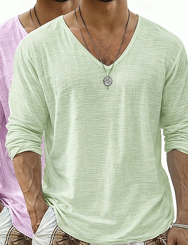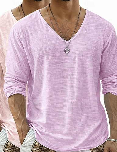 Per uomo Maglietta Maglietta in lino Maniche Corte Scollo a V Estate Semplice Moda Designer Essenziale Morbido Vacanza Casual Quotidiano Spiaggia Blu chiaro Bianco Rosa Maglietta Top per Uomo