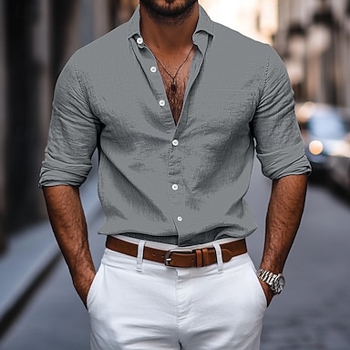 Per uomo Camicia camicia di lino Camicia estiva Camicia con bottoni Liscio Strada Informale Bianco Grigio Azzurro Manica lunga Colletto Primavera estate Abbigliamento