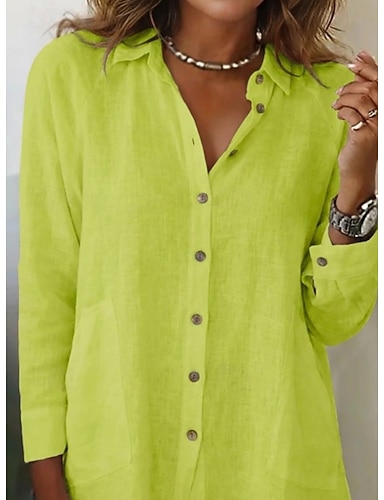 Per donna Camicia Finto cotone e lino Bottoni Tinta unica Semplice Elegante Casual Manica Lunga Colletto a Camicia Top Regolari Quotidiano Ferie Blu Bianco Giallo Rosa Estate Primavera