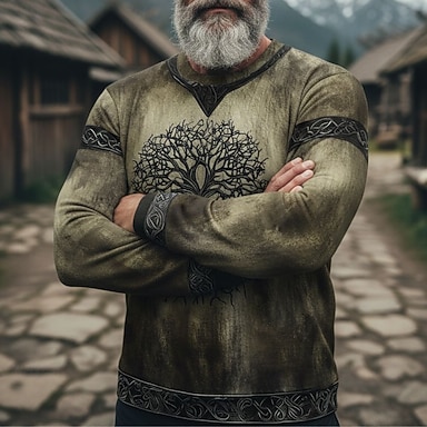 Per uomo Maglia Blu Verde Cachi Girocollo Albero della vita Yggdrasil Nodo celtico Stampato Casuale Quotidiano Abbigliamento casual alla moda Vintage Vichingo Autunno Inverno Abbigliamento Felpe con