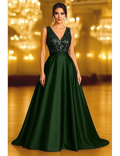 Tubino Colonna Lunghezza al pavimento Abiti da Ballo Abito da Sera Da principessa Abito formale Elegante Brillanti Senza Maniche Scollo a V Matrimonio Formale Con Paillettes con Pieghe