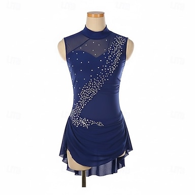 Abito da pattinaggio artistico Per donna Ragazze Pattinaggio sul ghiaccio Vestito Blu Orlo asimmetrico Rete Alta elasticità Allenamento Competizione Vestiti da pattinaggio sul ghiaccio Classico