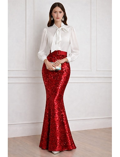Tubino Colonna Lunghezza al pavimento Abito Formale Abito da sera Abito da Sera Elegante Brillanti Manica 3/4 Senza Spalle Matrimonio San Valentino Con Paillettes con Paillettes