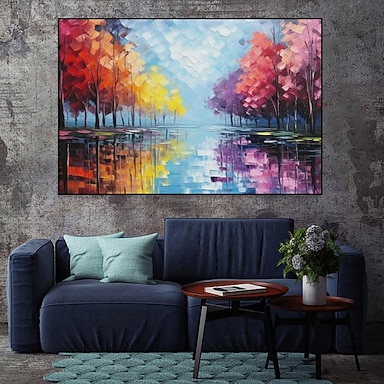dipinto a olio fatto a mano su tela decorazione artistica da parete moderno riflesso astratto di foresta e paesaggio lacustre per soggiorno arredamento per la casa dipinto senza cornice arrotolato non