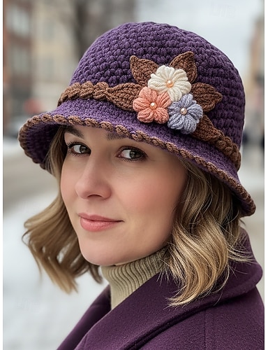 berretto da donna in lana lavorata a maglia – morbido materiale di lana, vari colori, decorazioni floreali 3D, fodera in pile per il calore, perfetto per Natale e attività invernali all'aperto