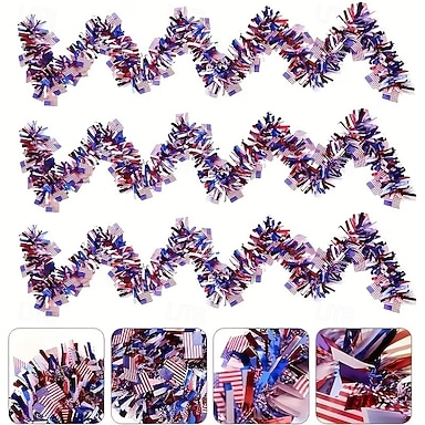 4/6 pezzi ghirlanda di orpelli patriottici, bandiera americana, striscione con frange in lamina, 2 m/6,6 piedi, ghirlanda rossa, bianca e blu per il 4 luglio, giorno dell'indipendenza, giorno della