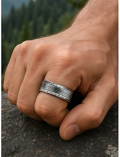 Anello vichingo da uomo in acciaio inossidabile con rune nordiche e nodo celtico, fascia in stile nordico vintage per motociclisti e cosplay