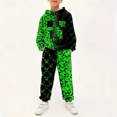 Da ragazzo 3D Fantasia geometrica Set felpa con cappuccio e pantaloni della tuta Manica lunga Stampa 3D Primavera Autunno Attivo Di tendenza Fantastico Bambino 3-12 anni Con cappuccio Esterno Da mare