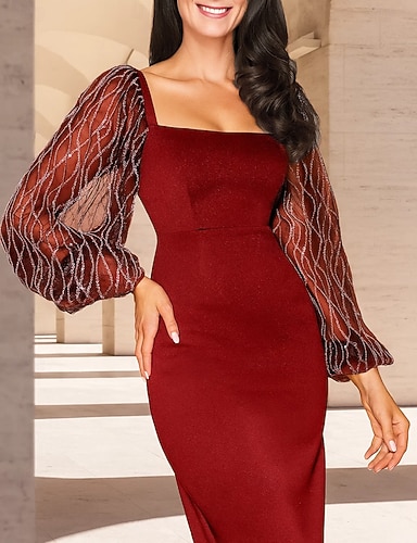 Abito a colonna lunghezza al pavimento abito da festa abito da cocktail abito da ospite di nozze abito della madre della sposa maniche lunghe scollo quadrato elegante vintage festa formale in velluto