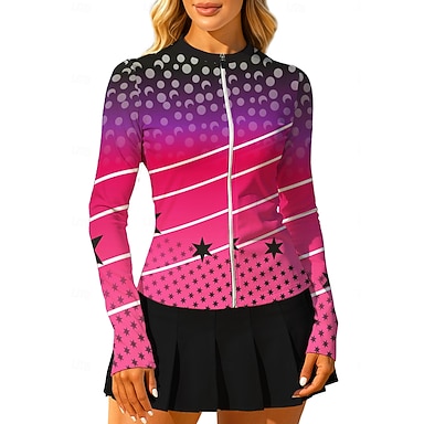Per donna Unisex Geometrico Sfumatura Stelle Top Maglietta sportiva Maglia da tennis Manica Lunga Cerniera Floreale UPF50+ Resistente ai Raggi UV Alta elasticità Traspirante Pallavolo Tennis Golf Il