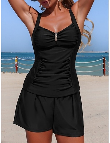 Per donna Costumi da bagno Tankini Due pezzi Shorts Costume da bagno Controllo della Pancia Vita alta Snello Senza schiena Vacanza Abbigliamento da Spiaggia Tinta unica Scollo a V Senza Maniche