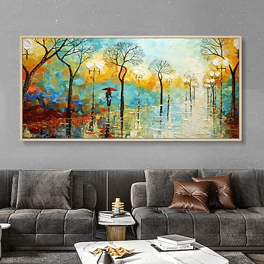 Pittura A Olio Fatta A Mano Su Tela Decorazione Della Parete Di Arte Pittura Di Paesaggio Astratta Colorato Coppia Boschi Marciapiede Per La Decorazione Domestica Pittura Arrotolata Senza Cornice Non