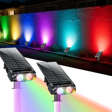 2 faretti solari da esterno con cambio colore, colonna guida luce PC, angolo di emissione della luce regolabile, faretto solare RGB impermeabile IP65 per giardino, cortile, albero, vialetto