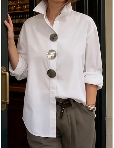 Per donna Blusa Camicia di cotone 100% cotone Bottoni Tinta unica Elegante Essenziale Casual Manica Lunga Colletto a Camicia Top Regolari Quotidiano Blu Bianco Giallo Rosa Verde Primavera Autunno