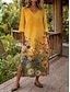 Per donna Abito maxi Abito Boho Abito a Tubino Vestito Estivo Abito da Spiaggia Bohemien Vacanza Etnico Spiaggia Ferie Data Vestibilità comoda Floreale Grafico Astratto Manica 3/4 Scollo a V Giallo