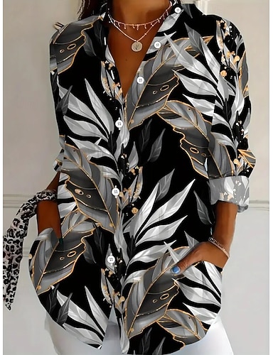 Camicia da Donna in Lino Leggera e Traspirante Stile Quotidiano Retro Vintage Maniche Lunghe Maniche a 3/4 Collo Top Lunghi Regolari Festività Quotidiane Uscita Bottoni Neri Rossi Marroni Verdi