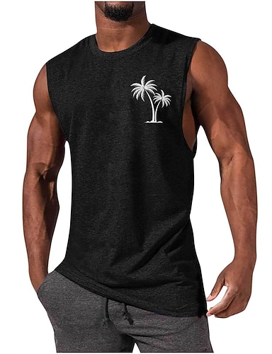 T-shirt da uomo con scollo a V in misto lino e cotone con stampa di palme, orlo a vivo, ideale per l'estate, la spiaggia, le vacanze al mare, maniche corte, morbida e casual, alla moda, taglie S-3XL.