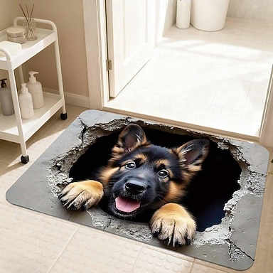 Cucciolo di pastore tedesco 3D illusione ottica 2D stampa piatta zerbino che sfonda una crepa design per divertimento &ingresso accogliente di casa
