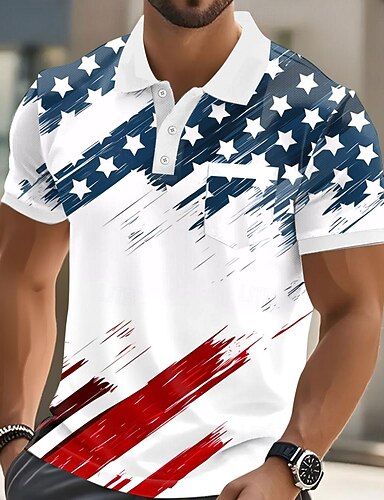 4 luglio 2026 250° Giornata dell'indipendenza Per maschio Bandiera Americana Polo Manica Corta Collo ripiegato Casual Quotidiano Casuale Sport & Outdoor Tasca Bottoni Estate Rosso rubino Bianco