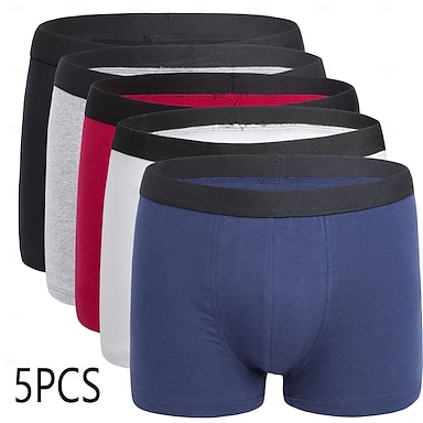 Per uomo 5 per pacco Boxer Slip Biancheria intima Mutandine Base Boxer Cotone Comodo Tinta unica Misura del girovita medio Confezione da 5-A Confezione da 5-B