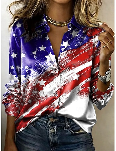 Giorno dell'Indipendenza Americana Per donna Camicia Camicia in raso Camicia button-down Camicia casual Stampato Grafico Bandiera Classico Casual Manica Lunga Colletto a Camicia Top Regolari