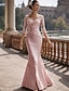 Abito da festa lungo fino al tè in stile sirena/trumpet abito da cocktail abito per invitati a matrimoni abito per madri della sposa maniche corte scollatura off-shoulder elegante formale spandex con