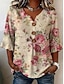 Per donna Camicia Floreale Grafico Vintage Elegante Manica Lunga Scollo a V Top Regolari Casuale Quotidiano Ferie Giallo + rosa Cachi + Bianco + Grigio Verde Azzurro Estate Primavera